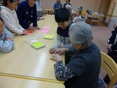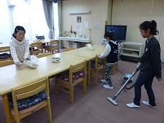 3箇所に分かれ、お年寄りや子どもたちと触れ合ったり、施設のお掃除や仕事のお手伝いなどを行いました。