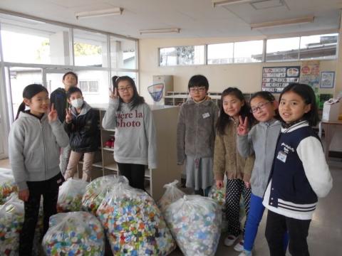 本日、学校に善意で届けられたエコキャップを業者に回収していただきました。このエコキャップは年間を通して、児童の自宅や地域の公民館、地域の施設から学校に届けていただいたものです。先週の福祉委員会の活動でまとめてくれたエコキャップの量は、なんと45L袋で22袋分。総重量は約120kgもありました。ご協力いただいたすべての方々に感謝するとともに、このエコキャップが、ワクチンとして姿を変え人々の役に立つことを喜びと感じています。人を想う子ども達が今後も益々増えるよう、次年度も回収を続けていきたいと思います。ご協力ありがとうございました。