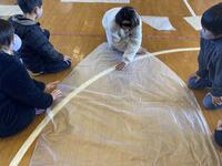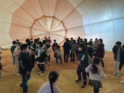 最後に、本物の気球の一部を膨らませていただきました。その内部に入った児童は、その大きさに驚いていました。貴重な体験をさせていただきました。