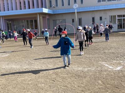 現在までの本校の最高記録は、326回です。短い時間でしたが、児童は、無我夢中で跳んでいました。寒い季節ですが、その寒さに負けないで、元気に遊ぶ児童を育てていきたいと思います。