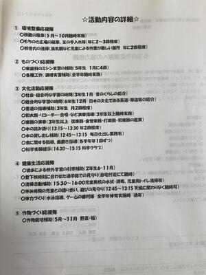 本校では、保護者及び地域の方々の協力を得、様々な教育活動を実践しています。活動内容等は多岐に渡っていますが、この中で協力できる分野がありましたら、是非希望くださるようお願いいたします。1日、1回だけの参加でも結構です。ご協力の程よろしくお願いします。