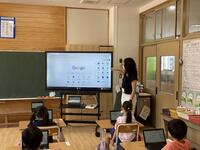 1年生では、生活科の授業で、アサガオの観察カードの作り方と送り方を学習していました。タブレットをおもちゃを扱うように操作している姿が印象的でした。