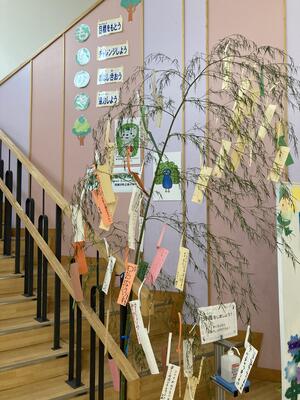 願いを込めて書いた短冊が飾られています。願うだけでは実現はできません。願いが叶うよう努力をしていってほしいと思います。