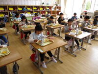 各学年とも、配膳の約束が身に付いて、当番などの役割を責任をもって行ったり、配膳中静かに待っていたりしています。