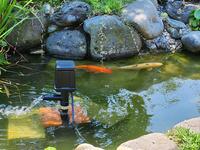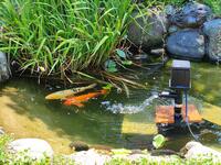 もちのきひろばの池(ひがしのハート池)にウォータークリーナーを設置しました。以前の物が動かなくなってから、しばらくの間設置していませんでしたが、水の汚れや酸素不足が気になるため、購入して設置しました。池の鯉が、気持ちよさそうに泳いでいます。