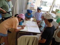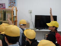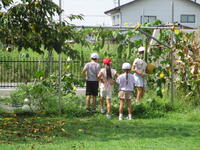 もちのき広場の草花や樹木、そこに集まってくる生き物などをテーマとしたクイズを行っています。子供たちは、ワークシートをもって歩き、クイズに答えていました。クイズの内容にないことにも目を向け、自然と触れ合っている様子も見られました。