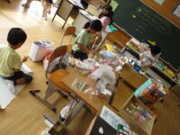 【2年生】生活科で動くおもちゃを作っています。自分で試しながら、友達と相談しながら活動しています。