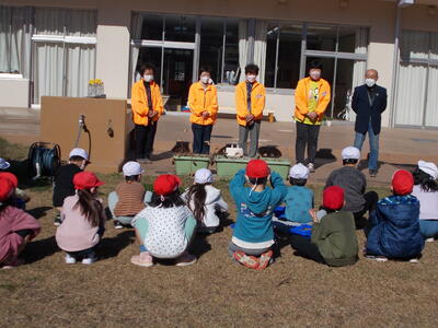 交通安全について、交通ルールを守ることや暗闇での危険性を話され、その後、児童の質問にも真摯に答えていただきました。