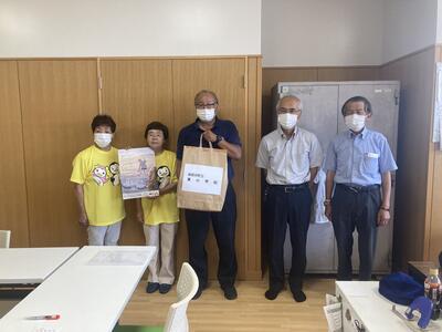 本来であれば、街頭等で啓発活動を行うのですが、コロナ禍の下で実施することが難しくなってきており、今回は、町の保護司、人権擁護員の方々が本校にお越しになり、ポスターと児童に配布するウエットティッシュを頂きました。