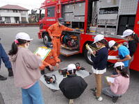 また、様々な場面を想定しそれらに対応した機材等が搭載されている消防車の見学等、教室の授業ではできない貴重な体験をすることができました。