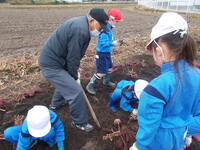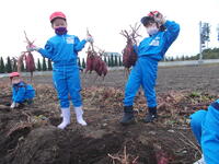 大きく育ったサツマ芋を掘り出した子どもたちは、満面の笑顔で芋を手にしていました。
