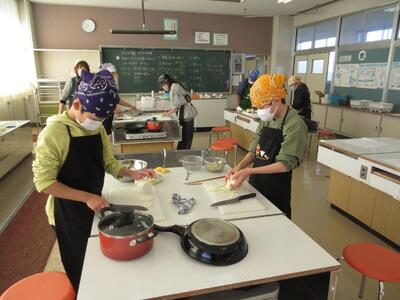 6年生の家庭科「まかせてね今日の食事」の学習で、調理実習をしました。