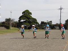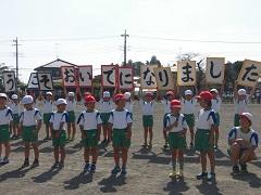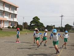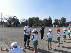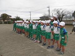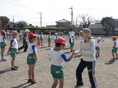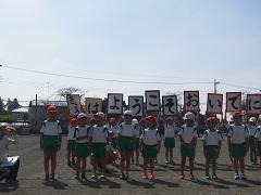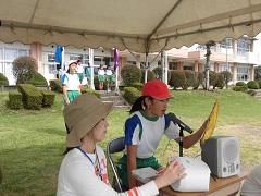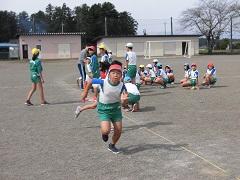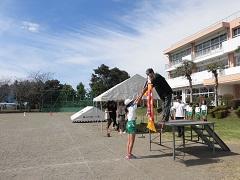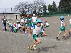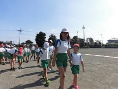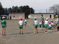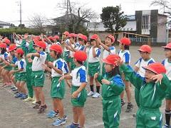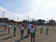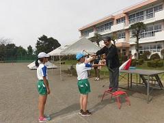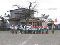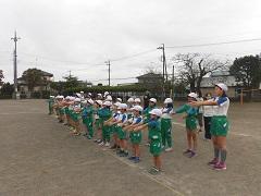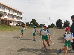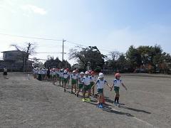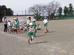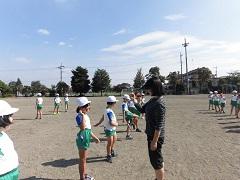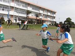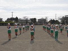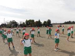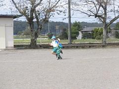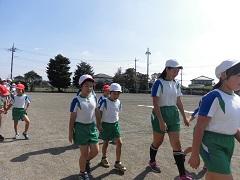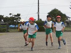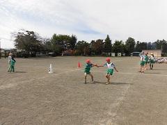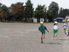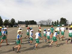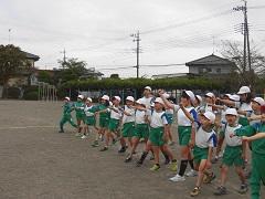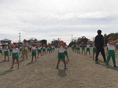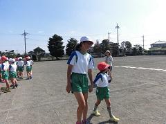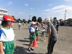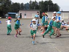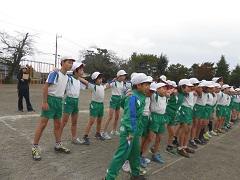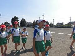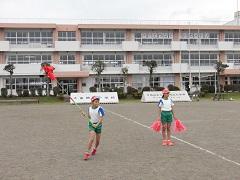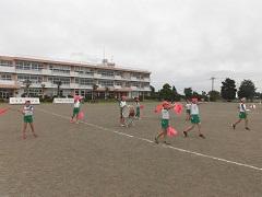 次に「おじいさんおばあさんこんにちは」の練習を行いました。1・2年生が歓迎の気持ちを込めてあいさつをした後、手をつないでいっしょにゴールを目指します。高齢者の皆様は、楽しみにしていて下さい。練習では上学年が高齢者役をしました。