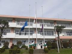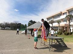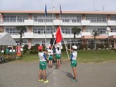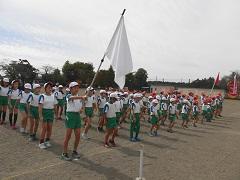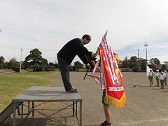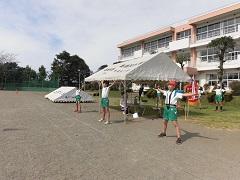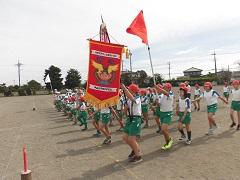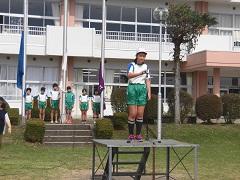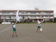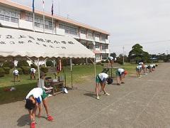 全校リレーの後は、開会式・ラジオ体操・閉会式の練習をしました。開閉会式は、優勝旗返還と授与、国旗掲揚と貢納など本番と同じように行いました。礼もきちんとそろってきました。赤白両団長の選手宣誓もすばらしいので期待していてください。
