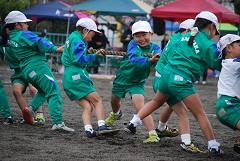 全校生による「みんなで応援!綱引き」は1対1で引き分けでした。