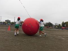 午後は1~3年生の「おどる玉入れ」、4~6年生の「OH!玉RUN」と団体種目が続きます。午前中は赤白同点で終了しました。