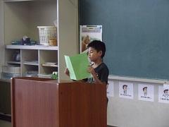 今日から第二学期が始まり、朝の活動の時間に始業式を行いました。今回は、1・3・5年生の代表児童が作文を発表しました。どの児童も、第二学期の目標を堂々と発表していました。校長からは、「めあてを達成するためには、続けることが大切である」「努力を続けることそのものにも価値がある」という話がありました。