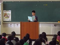3年生は、お家の方と1・2年生を招待して、「大豆けんこうパワー~大豆のひみつ教えます~」の発表です。大豆の育て方、大豆からできる食べ物、豆腐の作り方について、絵本やTVキャスター、実演など工夫してわかりやすく発表しました。