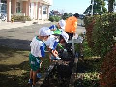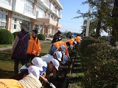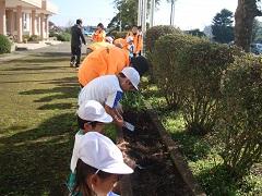 1年生がチューリップ交流を行いました。町更正保護女性会の方々が来校し、一緒にチューリップの球根を植えました。チューリップの花言葉は「正直」とか「思いやり」だそうです。来春にきれいな花が咲くのが楽しみです。