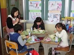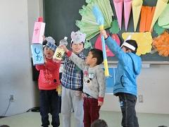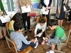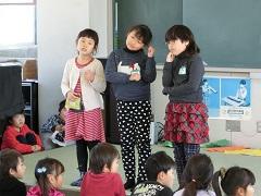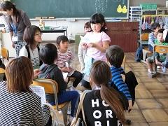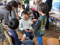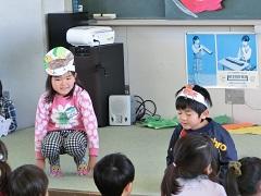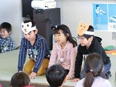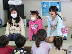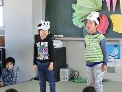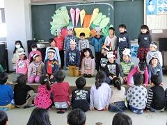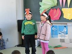 1・2年生がのびのび保育園との交流会を行いました。1年生は、劇「サラダでげんき」を上演しました。その見事な演技に保育園生も見入っていました。劇の後には、好きなサラダを一人一人発表しました。なお、この授業は、表現力養成講座の発表も兼ねています。