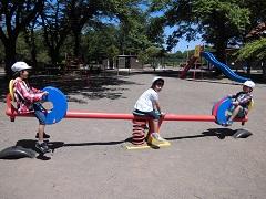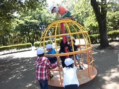 1年生が校外学習でかしの森公園に行ってきました。好天に恵まれ、公園の遊具を使って楽しく遊んだり、樹木や草花、虫などにふれながら自然に親しむことができました。