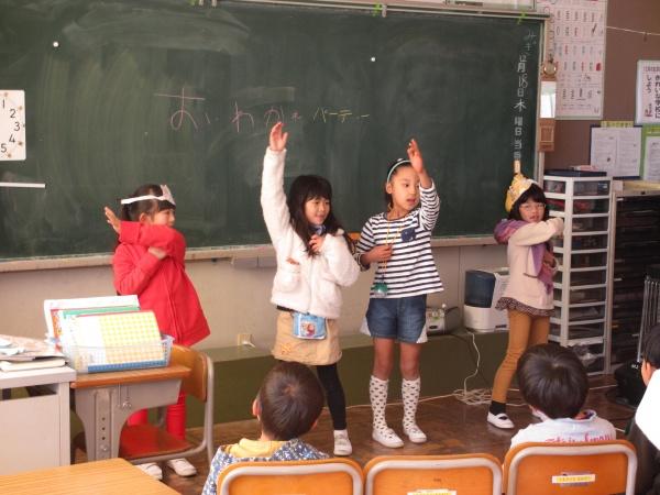 今日は1年生が育て収穫したさつまいもでスイートポテトを作り、その後お別れ会をしました。紅葉さんが体験入学したお陰で、クラスの雰囲気が一層明るくなり、子どもたちによい刺激を与えてくれました。