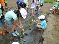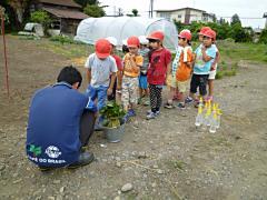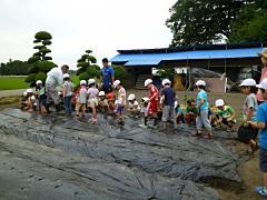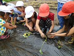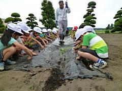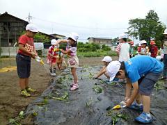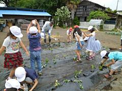 学校農園に1・2年生がさつまいもの苗を植えました。今から、収穫が楽しみです。