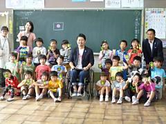 宇都宮市の不動産会社社長大塚訓平さんが来校し、「交通ルールを守って、命を守ろう」と交通安全のための講話がありました。また、これに合わせて、反射材が寄贈されました。子どもたちは熱心に話を聞いていました。