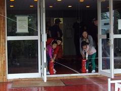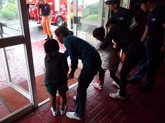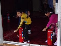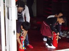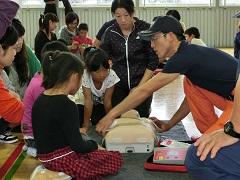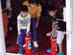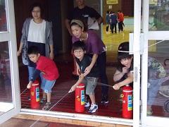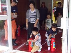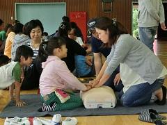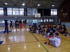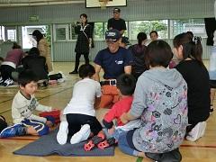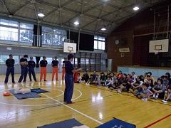 1年生が親子ふれ合い活動として、高根沢消防署の協力により、消防体験を実施しました。消火器やAEDの使い方、心臓マッサージを実際に体験しました。親子で協力して活動することができました。その後、教室で親子で一緒に給食を食べました。