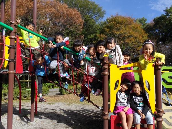 ドングリを拾った後には、みんなで楽しく遊具で遊びました。