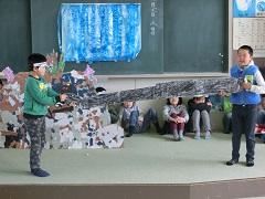 2年生は、英語劇「スイミー」です。英語の発音、アクセント、イントネーションともに2年生とは思えない出来映えでした。