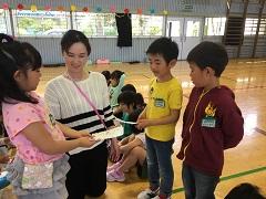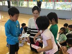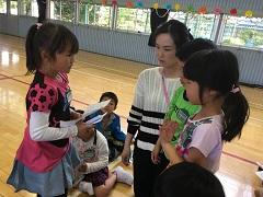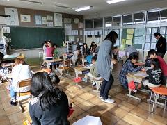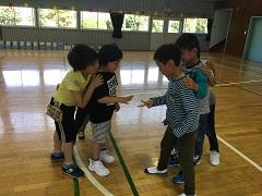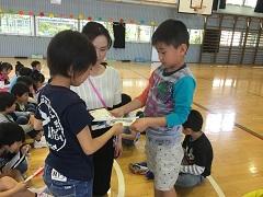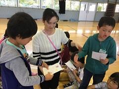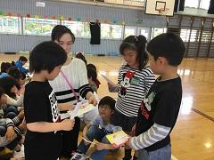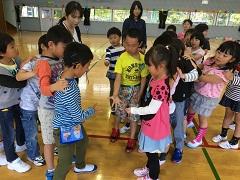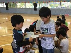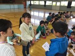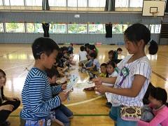 26日(火)に2年生が、1年生と一緒にじゃんけん列車やころがしドッジボールをしたり、名刺交換をしたりしました。ドッジボールでは、1年生に優しくボールを譲ったり、もらった名刺を「ずっと、とっておくね。」と声をかけたり、お兄さんお姉さんの立場で活動ができました。
