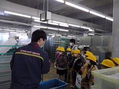 2年生が校外学習で宇都宮東郵便局に行ってきました。まず、説明を聞いた後、郵便物の仕分けや、配達バイクの出発のようすなどを見学しました。また、実際にスタンプを押す体験もしました。子どもたちは、真剣に説明を聞き、必要なことはしっかりメモをしていました。