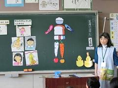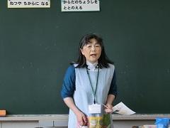 町立学校給食センターの栄養教諭が来校し、2年生を対象に食指導が行われました。「好き嫌いなく何でも食べよう」というタイトルで栄養に関する話を聞きました。子どもたちは、質問に素早く答えるなど意欲的でした。