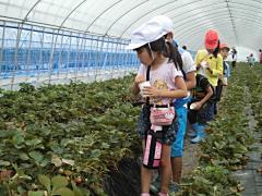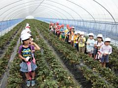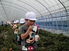 1・2年生が、前PTA会長の鯉沼さんのいちごハウスでいちご狩りをしました。説明を聞いた後、いちごを収穫し、実際に食べてみました。とても楽しい時間を過ごすことができました。