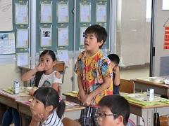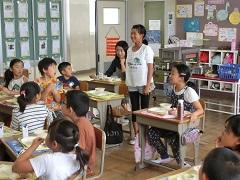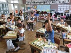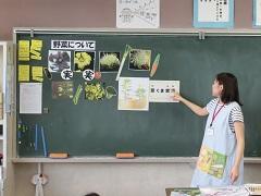 町立学校給食センターの学校栄養士が来校し、3年生対象に食指導が行われました。「野菜について」というテーマで、いろいろな野菜についてクイズに答えながら話を聞きました。子どもたちは身を乗り出すようにして話を聞き、クイズにも積極的に答えていました。