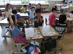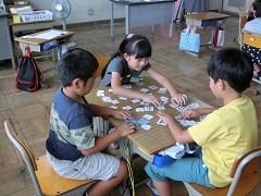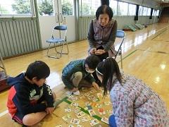 3年生が地域の方とのふれあい学習を行いました。昔の遊びということで、こま・けん玉・輪投げ・かるたなどを一緒に楽しみました。子どもたちは、初めて体験するものがほとんどで、なかなか上手にできませんでしたが、いろいろな話をしてふれあいました。