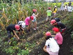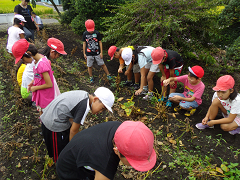 3年生は、総合的な学習の時間に「大豆 健康パワー」のテーマで学習しています。今日は、学校農園で育てていた大豆を収穫しました。今後は、大豆のもついろいろな力について調べていきます。