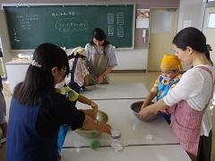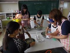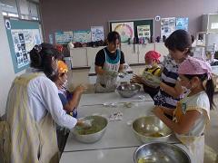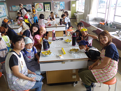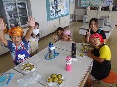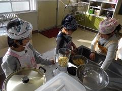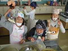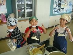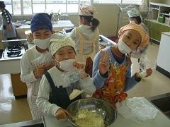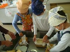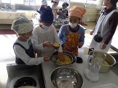3年生が親子ふれあい活動でスイートポテトづくりを行いました。あらかじめ役員の保護者がゆでておいてくれたさつまいもを手でよくつぶし、砂糖・バター・豆乳を加え、成形しアルミカップにのせ、表面につや出し用の卵黄を塗り、トースターで焼きました。今日は生クリームではなく豆乳を使用したのがポイントです。とてもおいしくできました。その後、教室で一緒に給食を食べました。