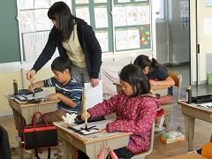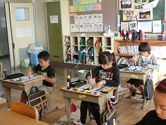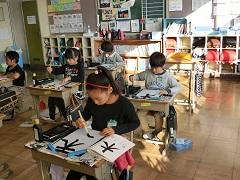 本町在住の鶴見先生が来校し、3年生に対して書写指導を行いました。3年生は、4月から月1回、鶴見先生から専門的な指導を受けています。半年がたち、子どもたちの筆遣いもかなり上達しました。
