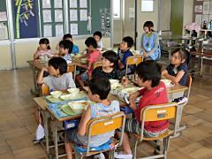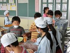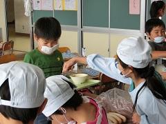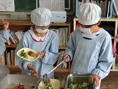 町立学校給食センターの栄養教諭が来校し、3年生に対して食指導が行われました。野菜に関する話を聞き、今日は、特に野菜を残さず食べていました。