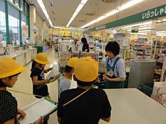 3年生が校外学習でリオンドールに行ってきました。この学習は、社会科の授業で、「地域の人々の販売について、見学したり調査したりして、販売の仕事に携わっている人々の工夫を考える」ことをねらいとしています。子どもたちは、お店の人の説明を聞いた後、店内を見学したり質問をして、課題を解決していました。