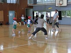 3年生が親子ふれ合い活動として、体育館で親子でドッジビーを実施しました。汗いっぱいになりながら楽しく活動しました。その後、教室で親子で一緒に給食を食べました。