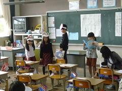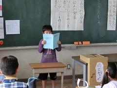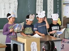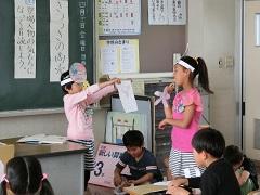 3年生の授業参観は、国語で「きつつきの商売」です。グループごとに音読を発表し、感想を交流しました。役になりきって発表しました。