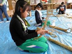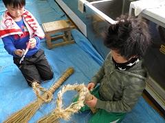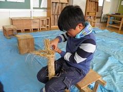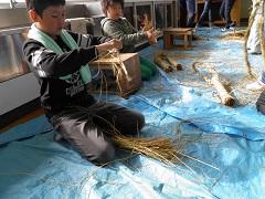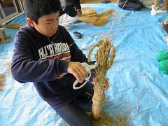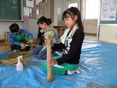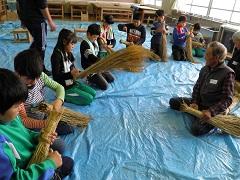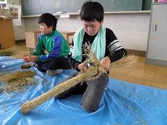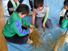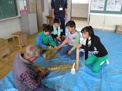 5年生が地域の方とのふれあい学習を行い、ぼうじぼ作りに挑戦しました。ほとんどの児童が初めての体験でしたが、苦労しながらも見事に完成しました。予定より早く終わったので、なわ綯いも教えてもらいました。