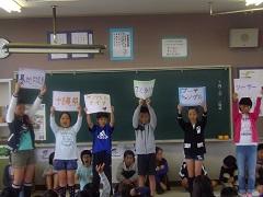 5年生の発表は、お米の品種や都道府県、世界の国に関するクイズと説明です。「森のくまさん」というお米の品種や「基地問題」のヒントで沖縄県を正解した児童がいたのでびっくりしました。