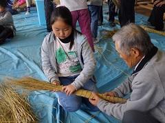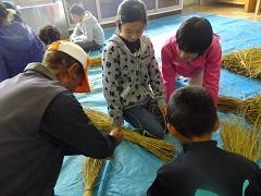 5年生が地域の方とのふれあい学習を行い、わら細工に挑戦しました。なわのない方を教えてもらい、ぼうじぼを作りました。最初は苦労しましたが、丁寧に教えていただき、立派な作品が完成しました。