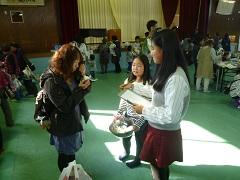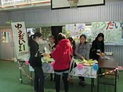 PTAバザーにあわせて、5年生が収穫したお米(ゆうだい21)を販売しました。午前中に試食用の小さなおにぎりを作り、来場者に食べてもらいました。また、購入者へのインタビューも行いました。努力の甲斐があって売り上げは上々でした。軽食コーナーのおにぎりも5年生が収穫したお米を使用しました。