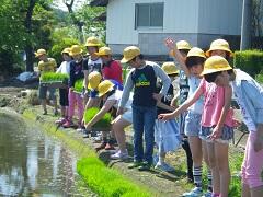 環境ボランティアの赤羽さんの指導の下、田植えを行いました。好天に恵まれ、少し暑いくらいでしたが、作業は順調に進み、上手に植えることができました。例年のように、終了する頃にはほとんどの児童が泥だらけになっていました。また、協力してくれた保護者の皆さまありがとうございました。
