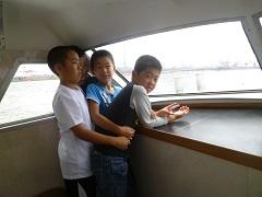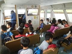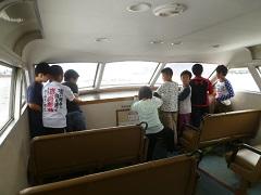 臨海自然教室、最初の活動は、見学船に乗っての鹿島港一周です。子どもたちは船旅を満喫しました。